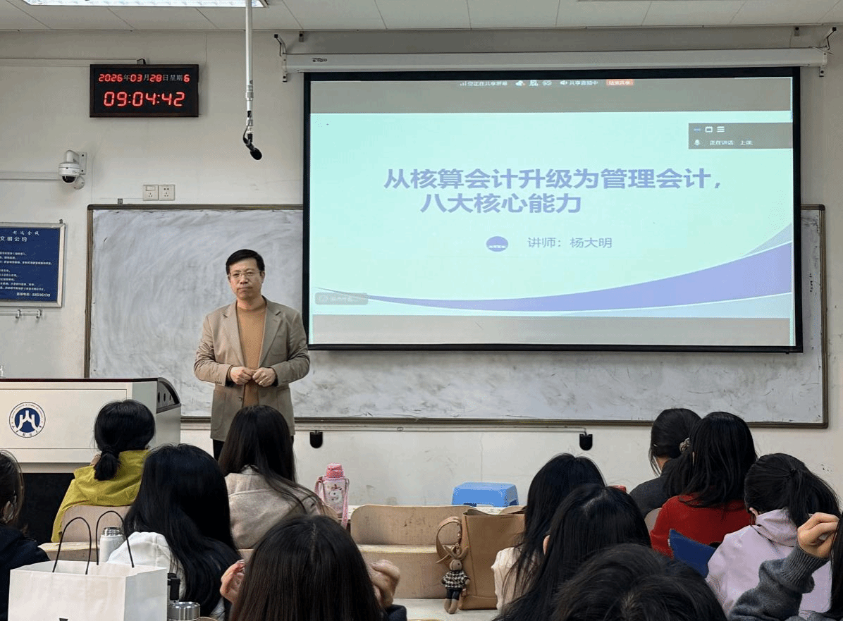 为帮助学生系统把握管理会计核心能力,提升业财融合实践水平,3月28日上午,AG百家乐官网 (MPAcc中心)特邀企业财税管理与业财融合实战专家杨大明开展了题为《管理会计的八大核心能力》的专题讲座。讲座在燕山校区逸夫楼308举行,采用线上线下相结合的方式,由MPAcc中心副主任罗怀敬主持,2025级会计专业硕士研究生和AG百家乐官网 部分教师参加了讲座。